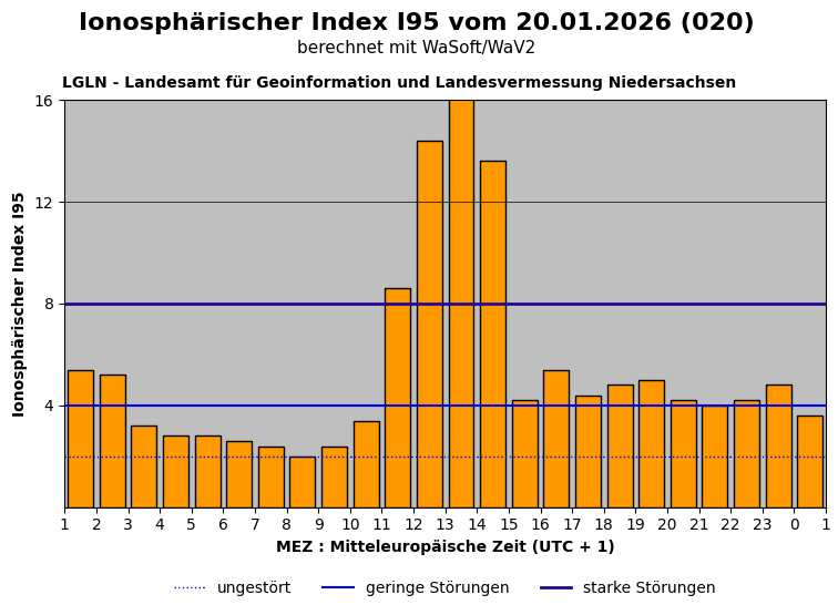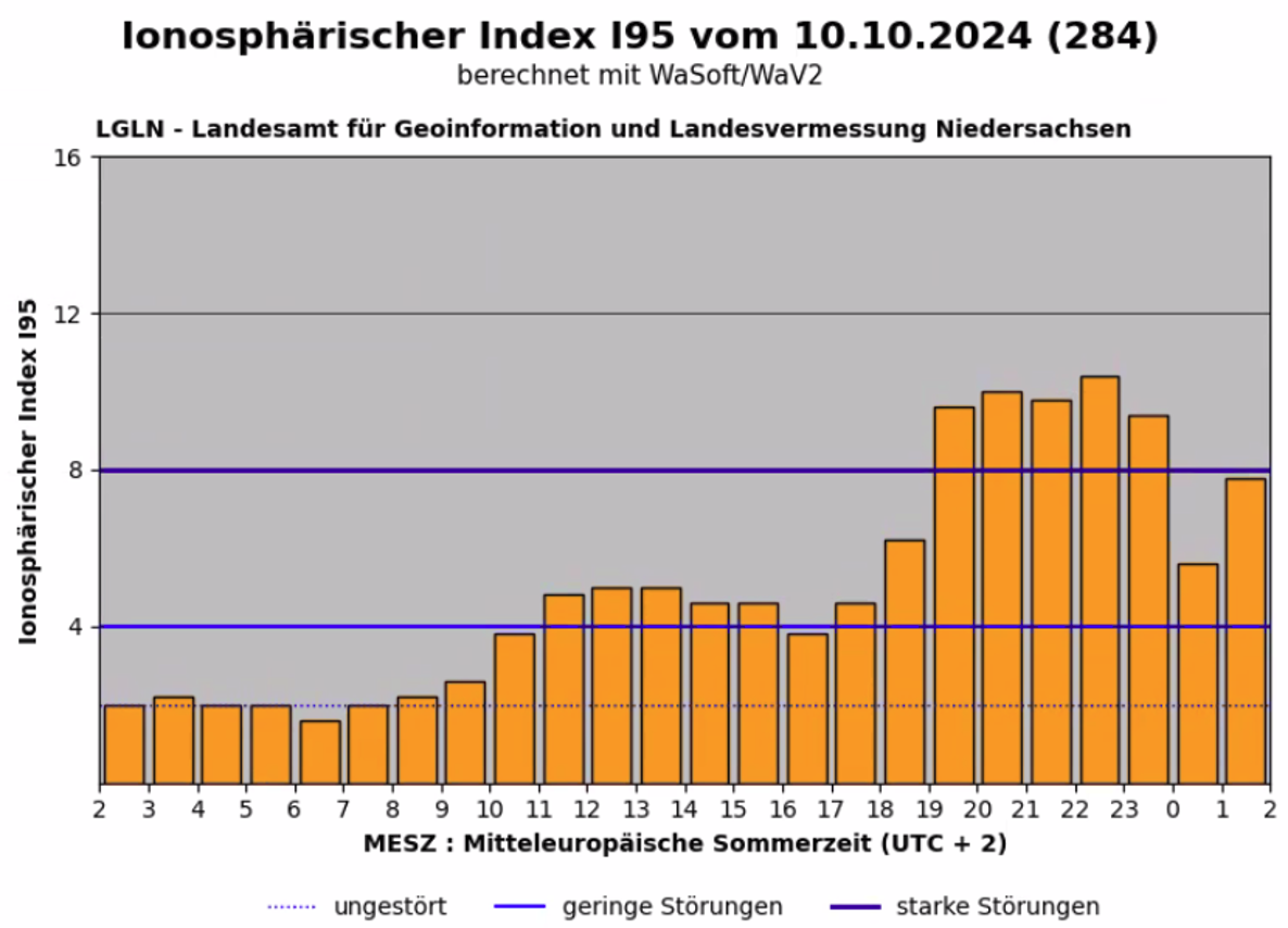Die Stärke der durch die Ionosphäre verursachten Störungen kann über den Index wie folgt interpretiert werden: