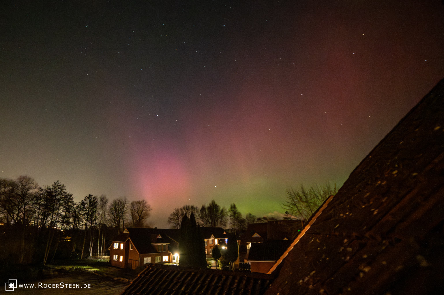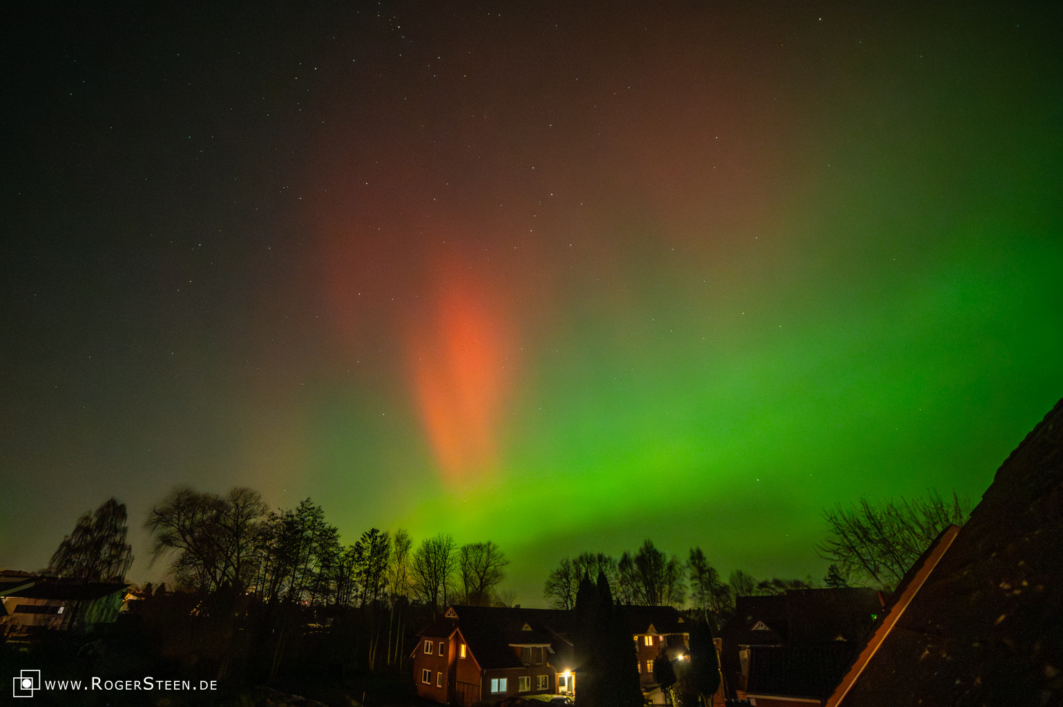 Es war eine Nacht der Nächte. Ich habe die Polarlichter über Norddeutschland / Buxtehude zwischen 19:39 Uhr und 01:48 Uhr fotografisch festgehalten. Es begann ganz unspektakulär mit etwas grün und rot am Himmel und endete in visuell sichtbaren Polarlichtern.